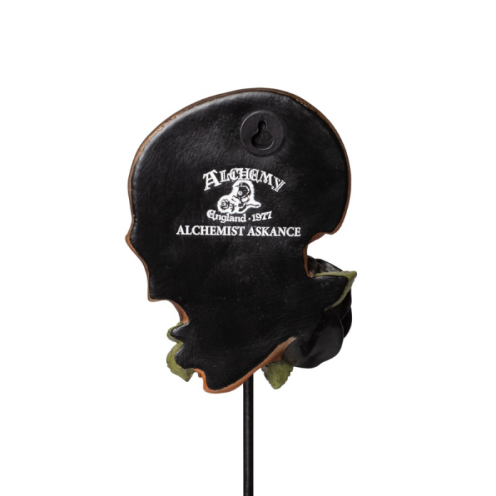 Introducing the Alchemist Askance. Discover the captivating allure of our stylised profile bronzed resin skull. A stunning piece that embodies the essence of Alchemy’s unique artistry. This exquisite skull features the trademark and iconic stylised letter “A,” showcasing the frowning features that are unmistakably Alchemy. The mysterious black rose gripped between its teeth. This striking detail not only enhances the skull’s aesthetic but also symbolises the beauty found in darkness, making it a must-have for lovers of gothic art and Alchemy’s distinctive style. …