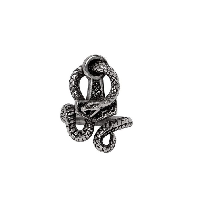 Bold, powerful, and steeped in Norse legend, the Bane of Thor Ring embodies the eternal struggle between gods and monsters. Hand-sculpted in fine English pewter with Alchemy’s signature antiqued finish, this substantial and fully adjustable ring features a detailed Thor’s hammer entwined by a serpent, symbolising the mighty clash between the thunder god and his destined nemesis. …