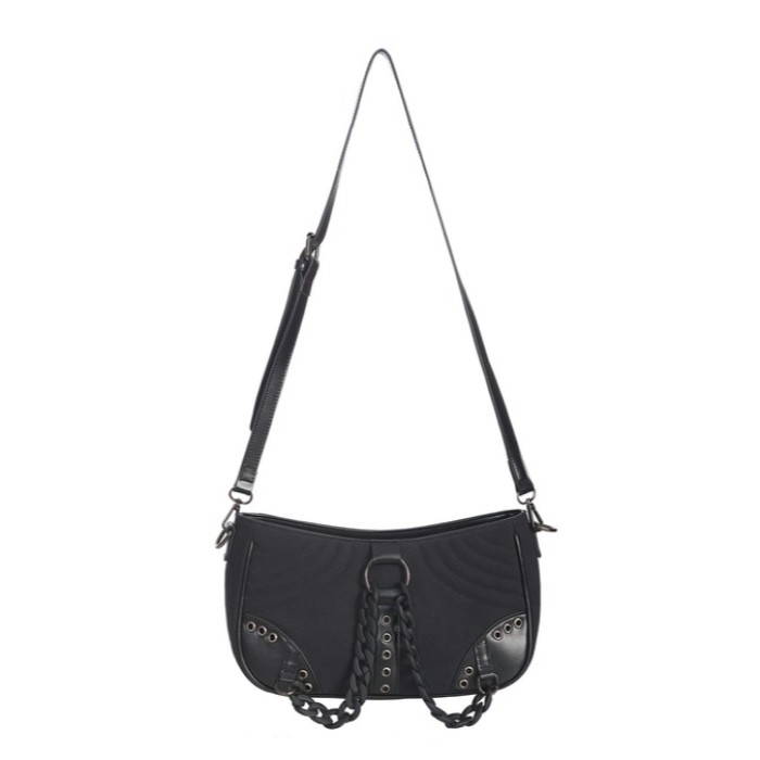 ACCESSORIZED SHOULDER BAG WITH CHAIN DETAIL AND DETACHEABLE SHOULDER STRAP.