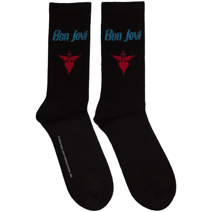 BON JOVI official licensed ankle socks, entitled “HEART DAGGER BLUE LOGO”. 80% Cotton – 18% Polyester – 2% Elastane.