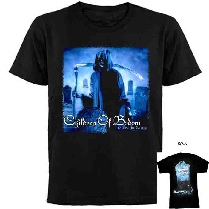 CHILDREN OF BODOM official licensed t-shirt entitled ”Follow The Reaper”. A 100% fine cotton t-shirt with a high quality printing both on the back and front.