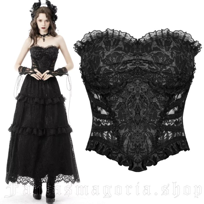 Midnight Romance – women’s Victorian Gothic black corset with lace accents by Dark In Love