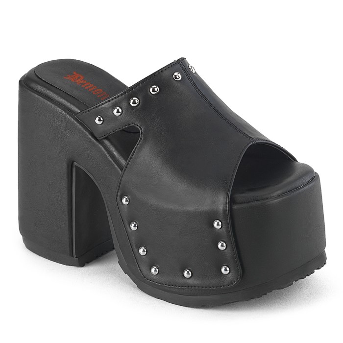 5″ (12.7cm) Chunky Heel, 3″ (7.6cm) Platform Slide Featuring Silver Chrome Plated Round Studs.