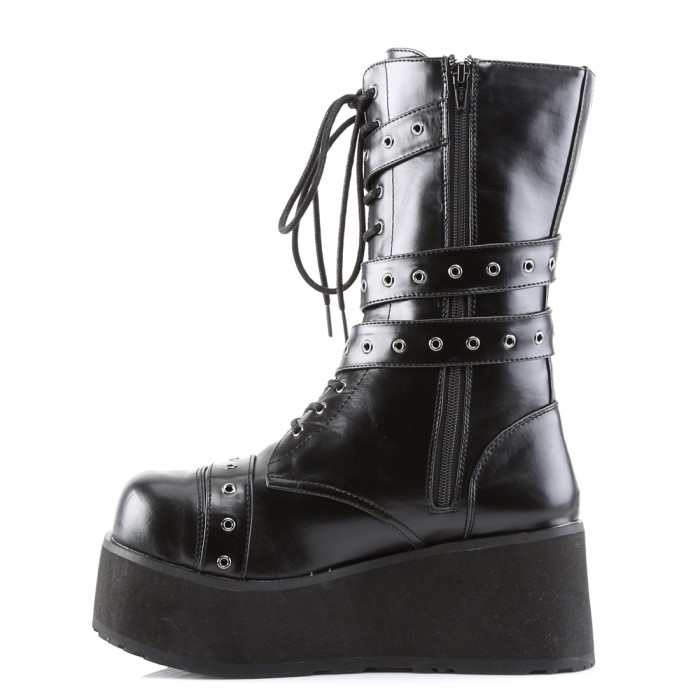 3 1/4″ (8.3cm) Platform Goth Punk Calf Boot with Wrap Around Strap, Full Inner Side Zip Closure