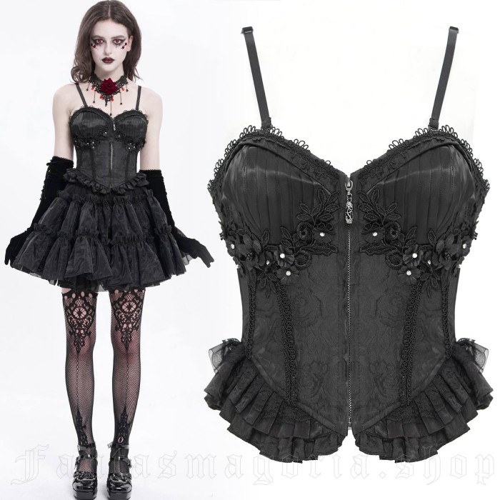 Rose Noire – women’s Romantic Gothic black brocade sleeveless corset top