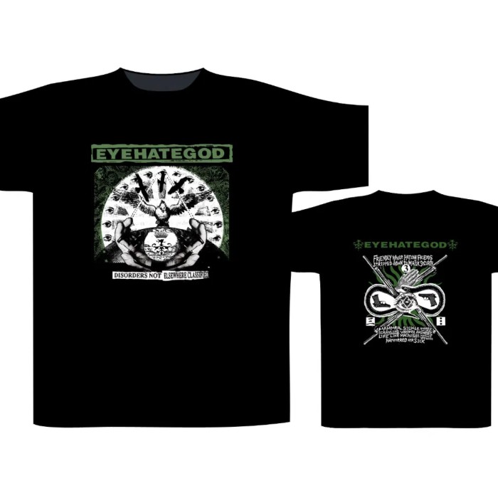 EYEHATEGOD official licensed t-shirt, entitled ”DISORDERS”. This is a 100% fine cotton classic t-shirt with high quality printing on the front and the back.
