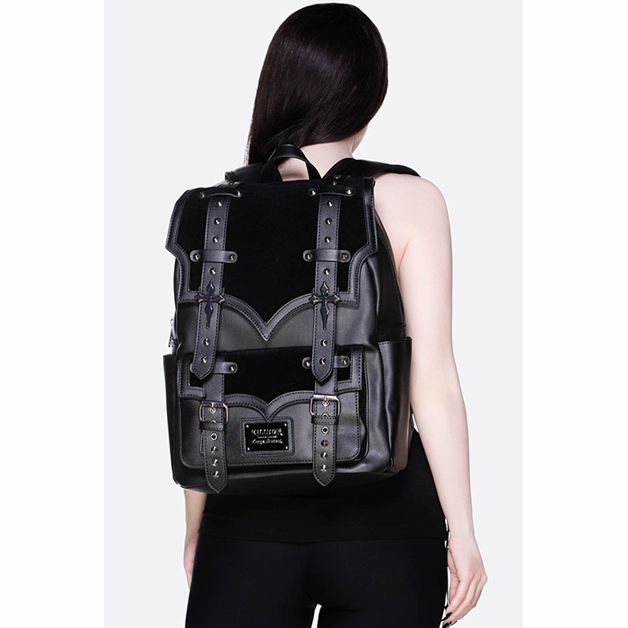 Hey, night creature! We present the lush ‘Creatures Of Night’ backpack; high-quality faux-leather, silver crosses, and contrasting hardware. Complete with zip closure, multi compartments, and adjustable straps. Fits all your essentials – perfect for a life in the adventure lane.