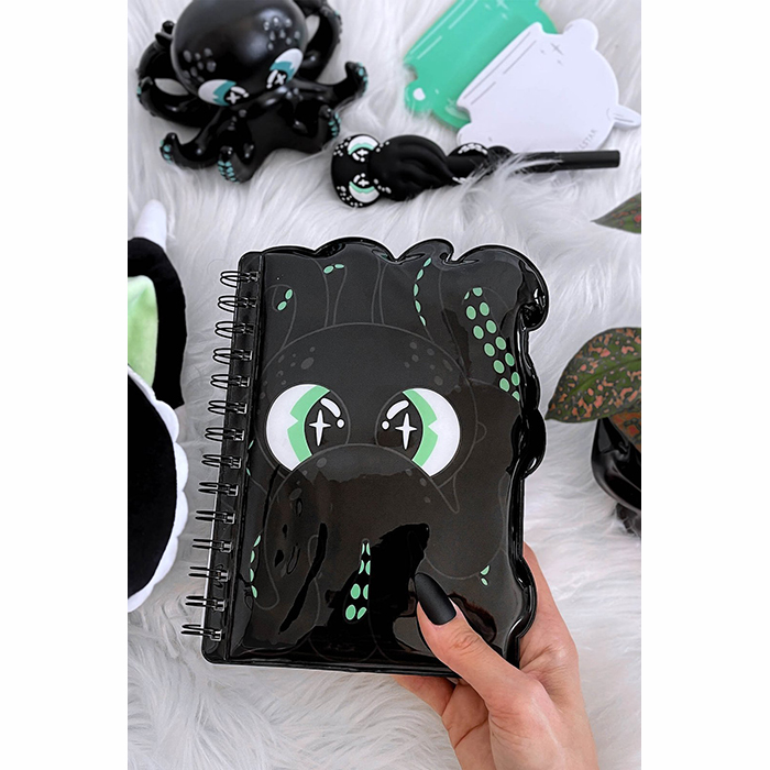 The ‘Cthulhu’ journal is the perfect notebook for any dark ghoul heading back to school! Featuring a black and green Cthulhu design, lined paper and ring binding. It’s the perfect combination of darkness + cuteness.