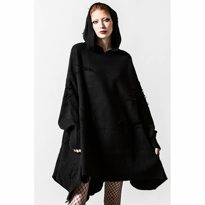 Channeling some dark vibes with the ‘Darkest Daze’ hooded knit sweater, perfect for layering – or wear as a statement piece. Distressed detailing all over and hood; with extra long length so can easily be dressed up or down. Ideal for festivals, midnight promenades with the moon and hungover Sundays.