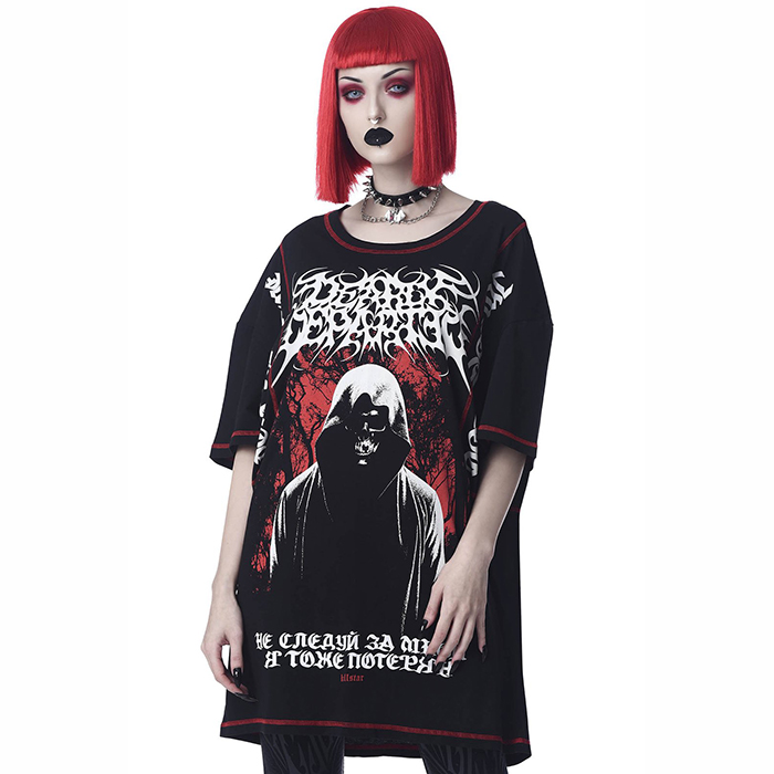 Get ready to channel some real 21st-century anarchist vibes in the ‘Departed’ oversized top; made using a super-soft stretch fabric with drapes for the perfect oversized fit. Features a round neckline and loose sleeves – finished with one of our bold graphic prints on the front. Perfect for adding a lil’ something exxxtra to yer fav dark lookz!