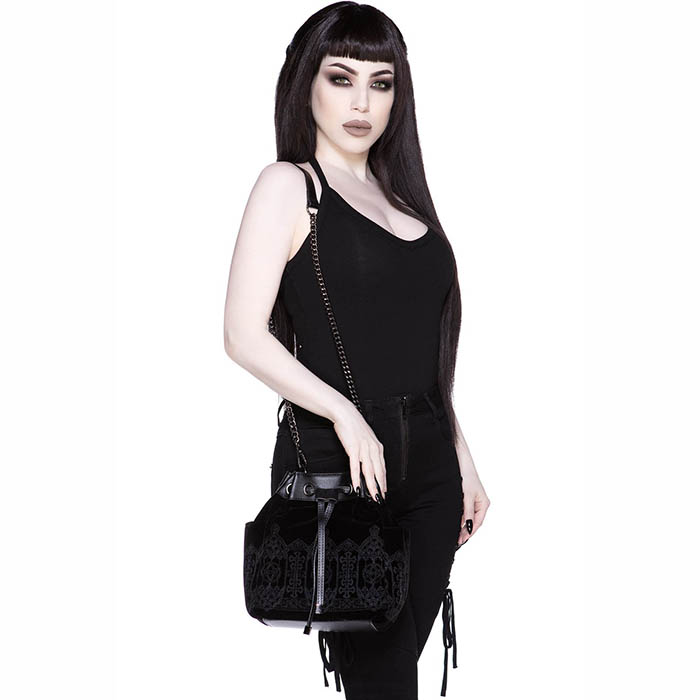Never let your fear decide your fate – the ‘Devil’s Mistress’ handbag is a serious must-have! Superior grade faux leather, statement print, long chain strap + short strap, and classic lining. A perfect size so you can fit yer must-have’s, but small enough to be effortless! Purrfect from Dusk to Dawn!