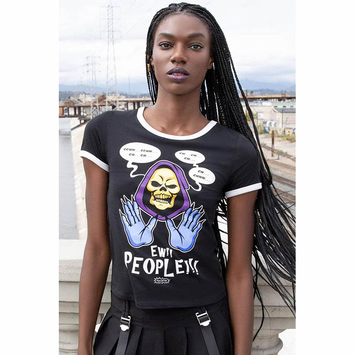 Make a statement ’bout your real feelz toward mankind in this fiendishly funny top! You’ll channel your mischievous soul in this quirky tee with white edge and cute capped sleeves. Flaunt your geek pride with this adorkable top, complete with a vivid graphic and flattering fit. Next time you leave yer crypt, pay homage to the arch enemy of He-Man with Killstar’s Skeletor Ew People Ringer Top!
