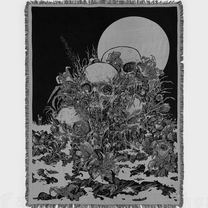 Mors Florest – Gothic woven tapestry with foliage and skull illustration