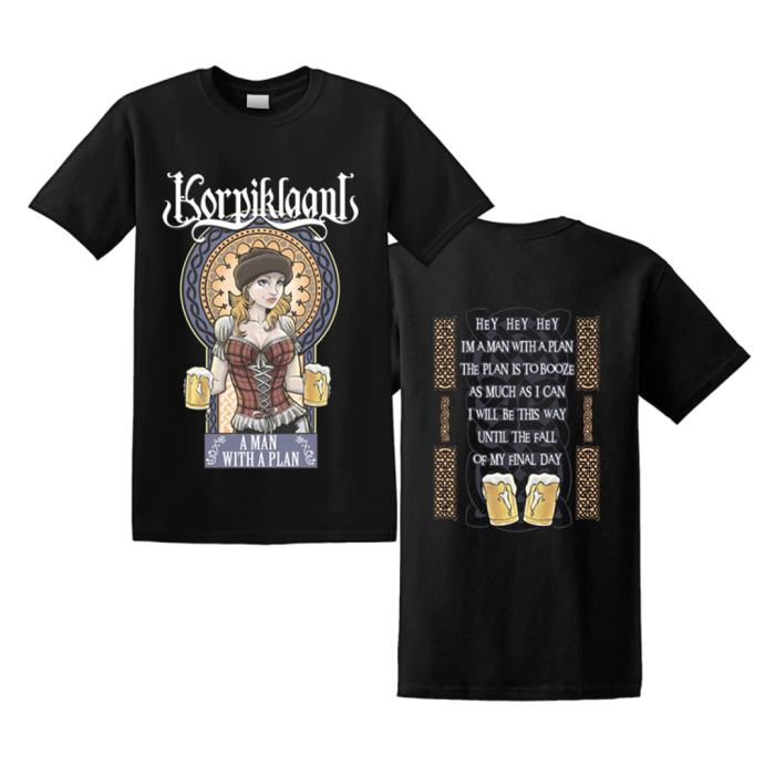 KORPIKLAANI official licensed t-shirt, entitled “A MAN WITH A PLAN” . This is a 100% fine cotton t-shirt with high quality printing on the front and back.