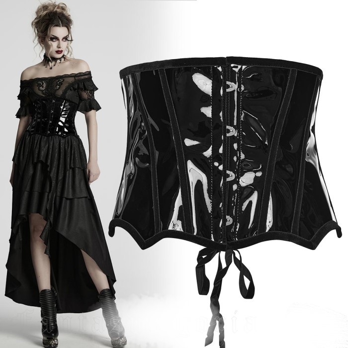 Daredoll – women’s cyberpunk and fetish black glossy faux leather corset
