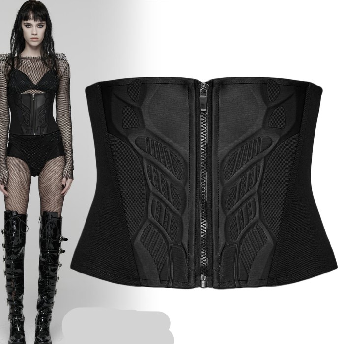 Machinatrix – women’s Cybergoth black corset belt with molded tech armor panels