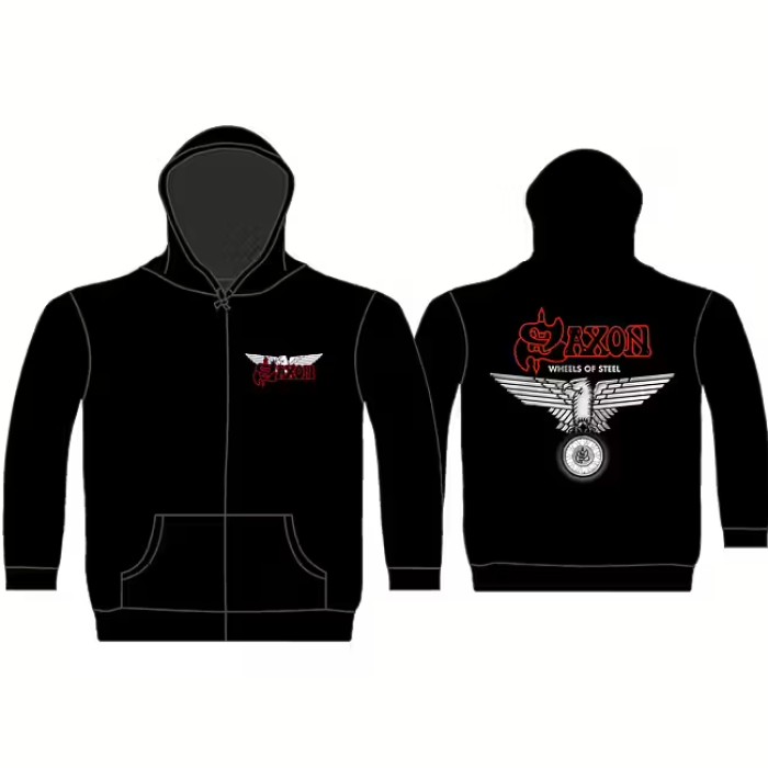 SAXON official licensed zip hooded sweatshirt, entitled “WHEELS OF STEEL”. This is a 70% cotton – 30% polyester fine zip hooded sweatshirt with high quality printing on the front and the back.