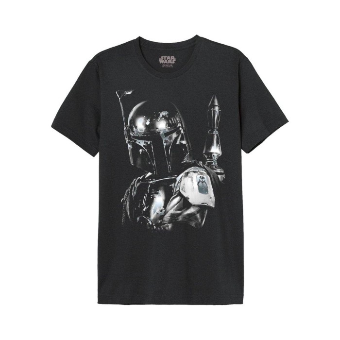 STAR WARS official licensed t-shirt, entitled “BOBA FETT SILVER MILLAR”. This is a 100% fine cotton t-shirt with a high quality of printing on the front.