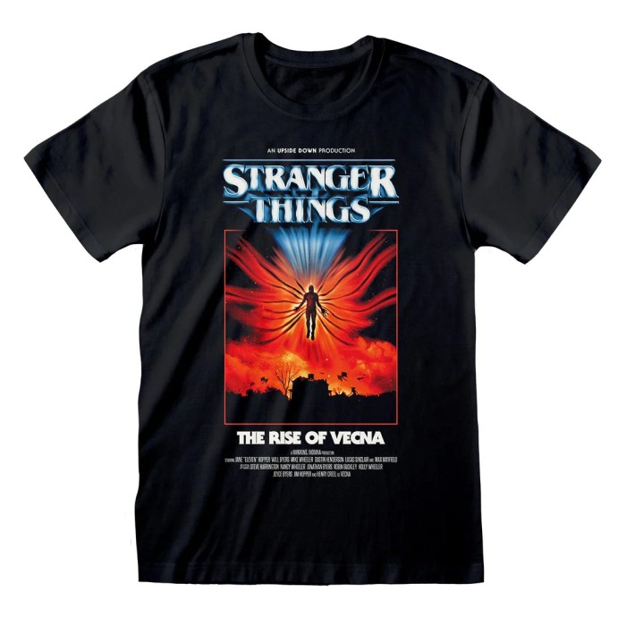 Officially Licensed Stranger Things merchandise. This T-Shirt features an iconic design from Stranger Things, printed on a 100% Cotton Black T-Shirt. 30% degrees.