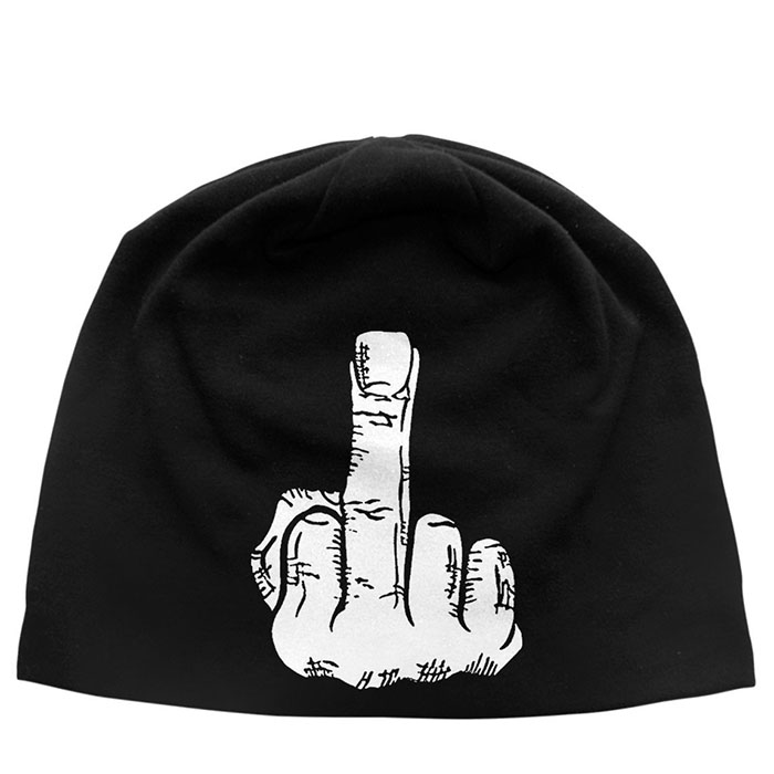 A unique beanie hat , featuring the famous gesture printed on the front. Made of 100% fine cotton with a discharge printing.